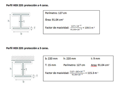 2. Determinar la masividad del perfil teniendo en cuenta su estado real en obra (sección expuesta)